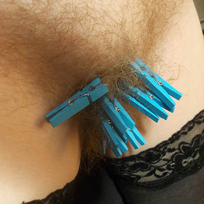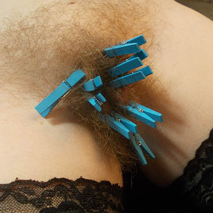 Klädnypor i hårig fitta