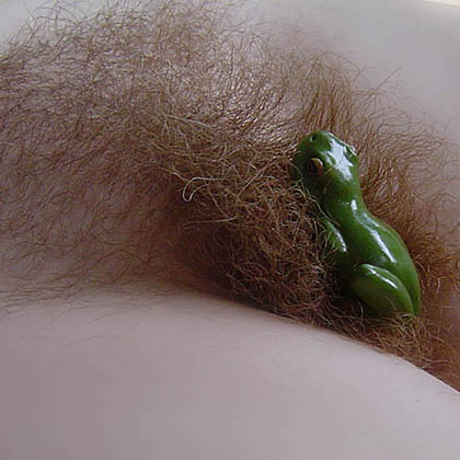 Hårig fitta med plastgroda